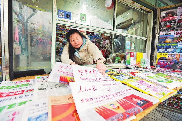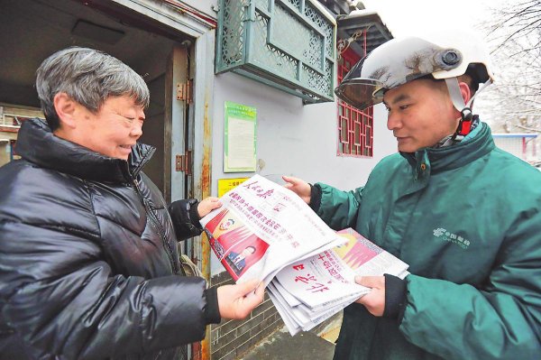 投遞員送達(dá)當(dāng)日《人民日?qǐng)?bào)》