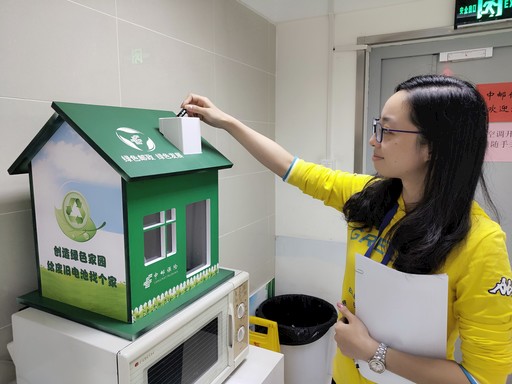 圖為中郵保險(xiǎn)湖北分公司開(kāi)展的“廢舊電池之家”活動(dòng)。 □由保昌 攝影報(bào)道