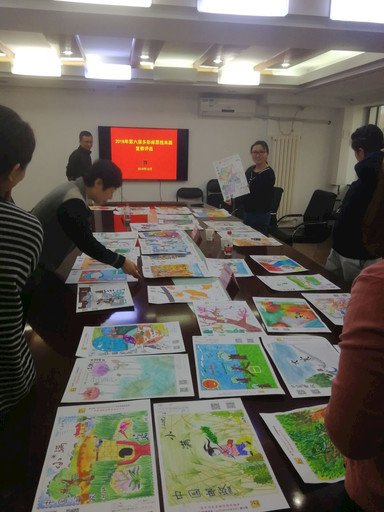 北京分公司少兒郵票設(shè)計(jì)大賽作品評(píng)審現(xiàn)場。
