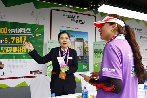 選手完賽后將參賽紀(jì)念明信片投進(jìn)郵筒。