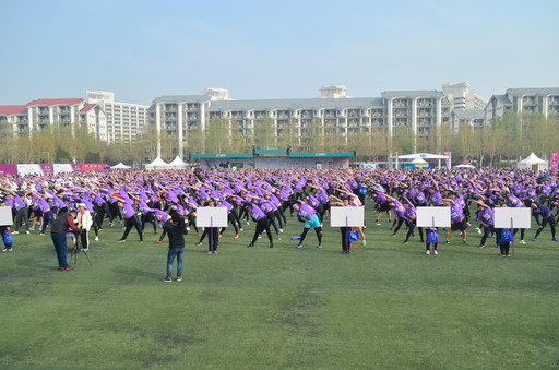 比賽開(kāi)始前,參賽選手踩著激昂的音樂(lè)節(jié)拍集體熱身。