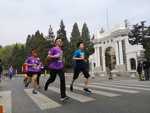 參賽選手跑過(guò)清華大學(xué)標(biāo)志性建筑——二校門(mén)。