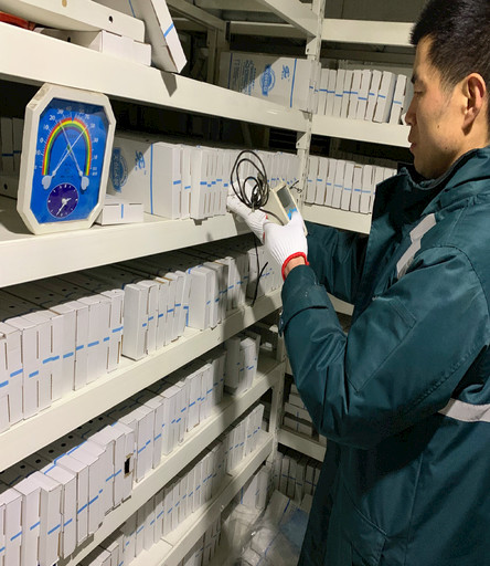 郵政員工利用溫度記錄儀監(jiān)控溫度。
