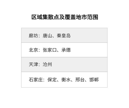 圖表2 區(qū)域集散點(diǎn)及覆蓋地市范圍