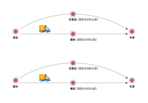 圖表3 設(shè)置廊坊區(qū)域集散點(diǎn)后,縮短了郵件傳輸距離
