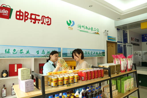 湖州是“綠水青山就是金山銀山”這一“兩山”理念的發(fā)源地,湖州市人民政府以“兩山”理念為核心,打造“兩山”農(nóng)品區(qū)域品牌,由供銷社負(fù)責(zé)運(yùn)營。湖州市分公司充分對接,為其提供金融、寄遞、宣傳等服務(wù)。同時(shí),與供銷社聯(lián)合運(yùn)營“郵樂小鎮(zhèn)”項(xiàng)目、開通郵樂網(wǎng)湖州兩山農(nóng)品館。目前,兩山農(nóng)品館已上架農(nóng)產(chǎn)品30余種,成交近3000單,累計(jì)實(shí)現(xiàn)業(yè)務(wù)收入30余萬元。圖為兩山農(nóng)品館工作人員向客戶介紹特色產(chǎn)品?! 觞S悅 攝影報(bào)道
