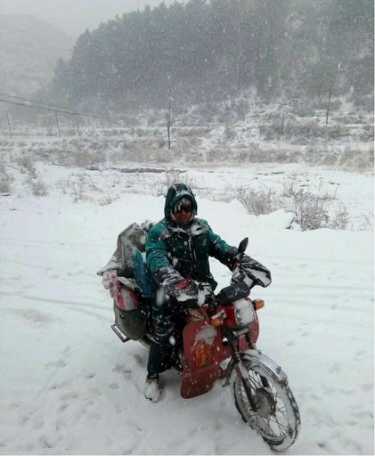 10多年前的孟山鄉(xiāng),條件十分艱苦,環(huán)境十分惡劣。那時的孟山鄉(xiāng)一帶鮮有橋梁,每次暴雨時節(jié),郭成明為了不讓用戶的郵件受到損失,每次過河前都將郵件用塑料包好,冒著大雨往返河流15次,將郵件完好無損地交到收件人手中。雖說每次都是有驚無險,但長途的跋涉“危險”也常伴左右,記得那是2010年冬天的一個傍晚,天色漸暗,他送完最后一個郵件想趁著天還沒有全黑趕回家中,可就在出村不遠的一條羊腸小道上,前方突然出現(xiàn)大片暗冰。他急踩剎車后,摩托車朝著路邊深溝沖了過去。他急忙握緊車把調(diào)轉(zhuǎn)方向,卻又撞向了路邊的山崖,重重地將他摔在了地上。這一次的經(jīng)歷造成了郭成明腿部靜脈曲張、腰椎間盤突出的傷痛,可他仍然堅持在這條郵路上跋涉,從來沒有抱怨過。