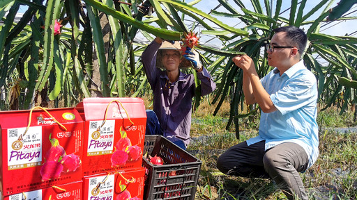 針對(duì)“919電商節(jié)”,浙江省瑞安市郵政分公司馬嶼營(yíng)業(yè)部員工提前走訪火龍果種植戶,將火龍果引入郵政電商平臺(tái),幫助農(nóng)戶銷售。郵政員工還協(xié)助農(nóng)戶進(jìn)行火龍果采摘、裝箱、稱重、裝車工作,為火龍果線上銷售、線下寄遞打通“綠色通道”。截至9月15日,瑞安市分公司已“銷售+寄遞”火龍果3000件。圖為郵政員工在果園協(xié)助農(nóng)戶采摘火龍果?! 醯椰?nbsp; 攝影報(bào)道