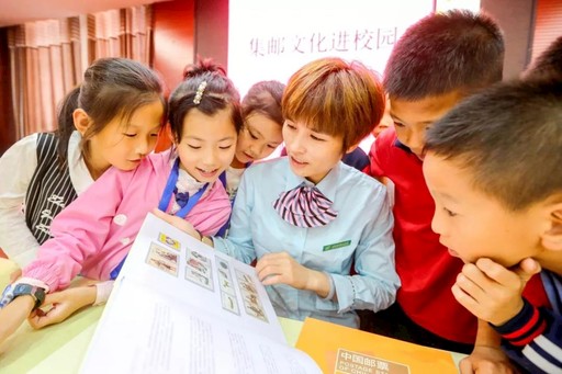 江西省峽江縣郵政分公司舉行“集郵文化進(jìn)校園”活動(dòng),讓學(xué)生零距離感受郵政文化魅力。袁珊 攝