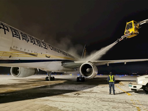 1月5日傍晚至1月6日凌晨,2020年首場大雪按約定時(shí)間來京城報(bào)到。正逢“小寒”節(jié)氣,北風(fēng)呼嘯,溫度降至零下5攝氏度。為確保飛行安全,中國郵政航空有限責(zé)任公司機(jī)務(wù)人員頂風(fēng)冒雪,對凌晨3點(diǎn)執(zhí)行航班的飛機(jī)進(jìn)行除雪作業(yè)。 □北京記者 楊衛(wèi)東 通訊員 潘再峰 攝影報(bào)道