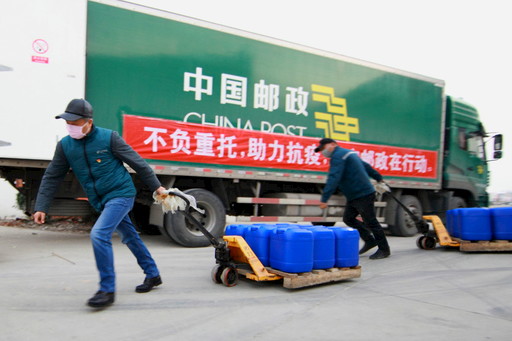2月1日傍晚,江蘇省淮安市郵政分公司有一批防疫物資(12噸消毒液)發(fā)往武漢。在當(dāng)天的作業(yè)組織中,該分公司兩名黨員駕駛員李訓(xùn)林和余洪耀積極服從調(diào)度,在消毒液生產(chǎn)企業(yè)協(xié)助裝運(yùn),確保了物資出庫、裝車不間斷進(jìn)行,為物資第一時間運(yùn)送贏得了寶貴時間。經(jīng)過12小時的車程,2月2日8點,郵車到達(dá)受捐贈單位。交接物品結(jié)束后,二人啟程返回淮安,到達(dá)后直接到隔離點接受觀察?!跫獱栐?nbsp; 劉春平 攝影報道