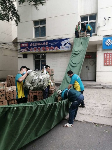 為做好校園包裹收寄工作,平房區(qū)分公司校園包裹項(xiàng)目組抽調(diào)100名員工進(jìn)駐理工大學(xué)幫畢業(yè)生打包、收寄。為了解決學(xué)生公寓樓樓層高、郵件搬運(yùn)困難的問題,員工們制作了一個(gè)盤運(yùn)“神器”,利用滑道原理將校園包裹從二樓的寢室窗戶輸送到一樓,大大提升了盤運(yùn)和裝車速度。由于包裹量大,6月24日,員工們紛紛請纓通宵發(fā)運(yùn)郵件,項(xiàng)目組最終制定了通宵發(fā)運(yùn)攻堅(jiān)方案。從24日17時(shí)起,兩個(gè)攻堅(jiān)組開始了端午夜戰(zhàn),一條條“綠色滑道”在校園里賽起了別樣的龍舟,當(dāng)晚共發(fā)運(yùn)校園包裹近30噸,得到了理工大學(xué)師生的一致好評?!醪酚?nbsp; 攝影報(bào)道