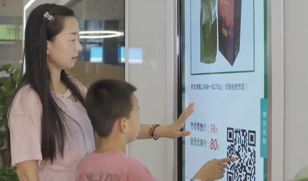 無實物超市的建設(shè)依托郵政現(xiàn)有實體渠道,發(fā)揮郵政貨源優(yōu)勢,融合線上與線下,門店承擔(dān)商品配送和推介、線上渠道承擔(dān)推廣和成單功能,構(gòu)建起網(wǎng)點的零售場景,形成了一個零售新業(yè)態(tài)。它不同于“郵樂小店”APP或者線上微商,具備超市的功能屬性,但不是實時購物的超市。合肥市海恒營業(yè)所覆蓋特色商圈,網(wǎng)點的13塊電子屏滾動展示52款自營大單品和安徽特色農(nóng)產(chǎn)品,成為周邊商戶購物的新場所。上半年銷售商品5萬余元,同比增長11%。