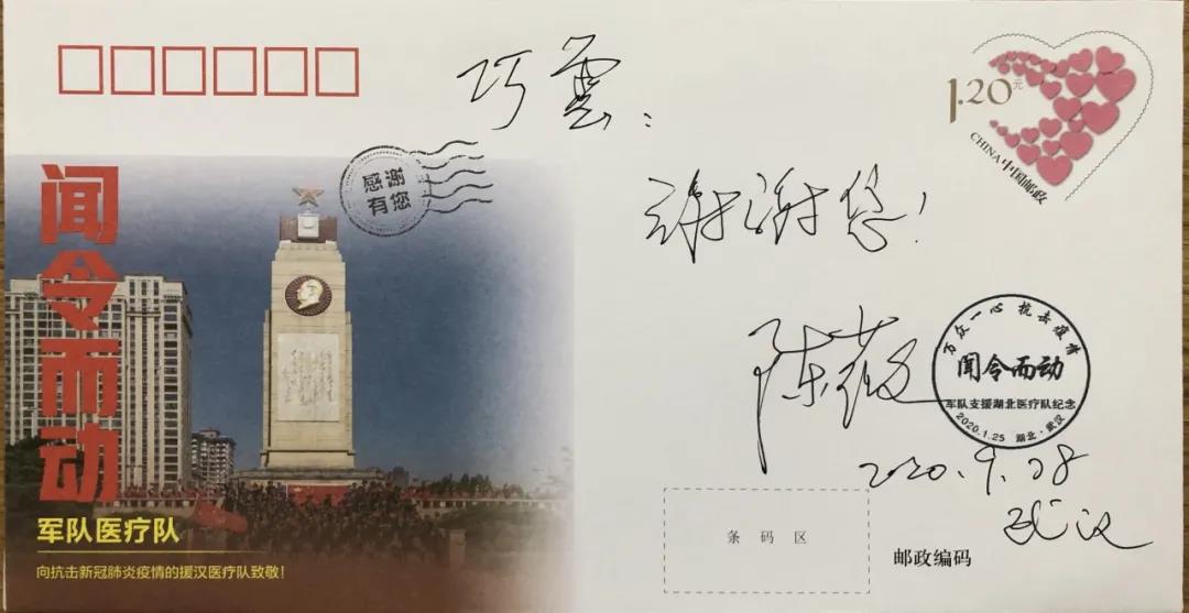 疫情期間,武漢市分公司為表達武漢人民對不計報酬、不論生死的援漢醫(yī)療隊感恩、感謝、感激之情,以31支援漢醫(yī)療隊為主題,融合武漢人文風(fēng)光和特色地標元素,與人民日報社新媒體中心聯(lián)合開發(fā)了這套《感恩有你》抗疫紀念郵資封。用郵政特有的“文化符號”致敬仁心、感恩大愛,銘記為武漢拼過命的人們。9月24日,在挑選送給108位勇士的禮物時,從軍29載的陳薇院士經(jīng)過反復(fù)斟酌和比較,在武漢市分公司推薦的多款抗疫郵品中,最后敲定了這套含有軍隊醫(yī)療隊紀念封的郵品。