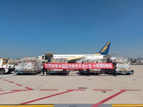 9月14日的大連周水子國際機場秋高氣爽,12點29分,一架垂直尾翼上噴涂著EMS、航班號為CF241的波音737飛機從這里起飛,14點15分在小雨中安全飛抵日本大阪關(guān)西國際機場,標志著中國郵政“大連—大阪”國際航線正式開通。