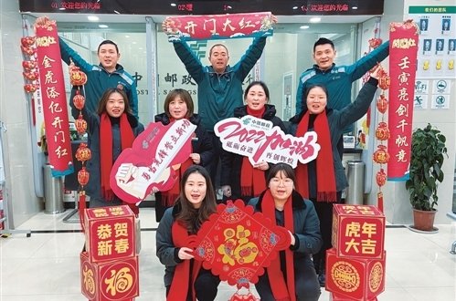 喜氣洋洋辭舊歲,虎虎生威迎新年。新年伊始,中國郵政廣大員工意氣風(fēng)發(fā)、豪情滿懷,全力開展業(yè)務(wù)旺季開門紅活動(dòng),大步邁進(jìn)推動(dòng)企業(yè)高質(zhì)量發(fā)展的新征程。在推進(jìn)代理金融業(yè)務(wù)發(fā)展中,重慶市萬州片區(qū)郵政分公司定下了一個(gè)“小目標(biāo)”:春節(jié)前,全區(qū)郵政儲(chǔ)蓄余額規(guī)模要突破200億元。作為萬州郵政代理金融的標(biāo)桿網(wǎng)點(diǎn),電報(bào)路郵政所員工一展“壬寅亮劍千帆競(jìng),金虎添億開門紅”的對(duì)聯(lián),積極營造營銷氛圍,決心在網(wǎng)點(diǎn)儲(chǔ)蓄余額破億元的基礎(chǔ)上,再創(chuàng)新業(yè)績。