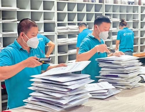 截至8月10日,北京市郵政分公司累計(jì)寄遞錄取通知書郵件20.4萬(wàn)件。7月7日,北京郵政2022年高考錄取通知書寄遞工作正式開啟,該分公司多措并舉,全力保障高考錄取通知書郵件的寄遞工作。