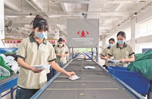 復(fù)用人員利用直線分揀機(jī)處理快包輕小件。