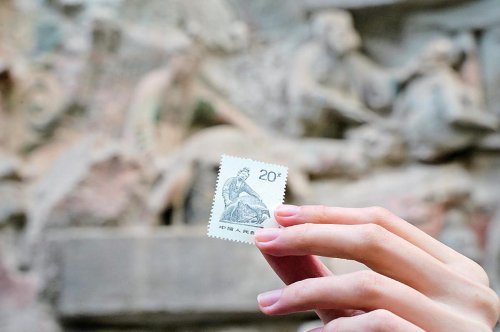 郵票上的大足石刻“養(yǎng)雞女”。