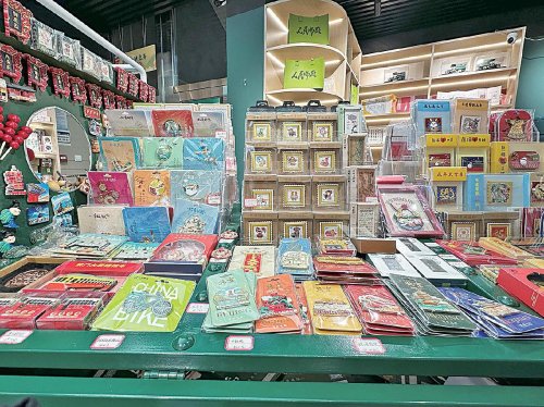 新國(guó)潮主題郵局內(nèi),冰箱貼、鑰匙扣等文創(chuàng)產(chǎn)品琳瑯滿(mǎn)目?!醭萄┟贰z