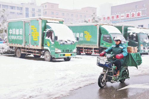 湖北省武漢市郵政分公司在做好人員、車輛安全防范的情況下,攬投部全部正常對外服務(wù);投遞員迎雪而上,提前到崗,做好車輛檢查、郵件分揀等班前準(zhǔn)備工作。同時,合理規(guī)劃投遞路線,抓緊時間出班,及時將郵件安全、高效送到市民手中。