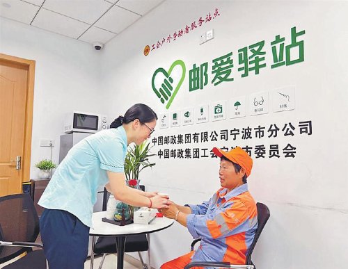 在廣東廣州,當(dāng)?shù)剜]政依托“郵愛驛站”,聯(lián)合市總工會(huì)開展了“雪糕免費(fèi)送,清涼零距離”活動(dòng),并廣泛開展高溫季免費(fèi)涼茶派發(fā)、環(huán)衛(wèi)工人中秋游園聯(lián)誼會(huì)等各類普惠性活動(dòng);在遼寧撫順,各“郵愛驛站”利用紙媒、營業(yè)廳展播等渠道,宣傳打造“雷鋒城”品牌;在重慶榮昌,戶外勞動(dòng)者走進(jìn)富安郵政所內(nèi)的“郵愛驛站”,累了可以歇腳,渴了可以飲水,冬可取暖、夏可納涼,閑暇還可讀書閱報(bào)……