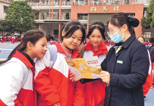 日前,郵儲銀行廣東省韶關(guān)市分行以“金融消保在身邊、保障權(quán)益防風(fēng)險”為主題,開展2024年“3·15”宣傳活動。圖為韶關(guān)市分行翁源縣支行工作人員開展“金融知識進(jìn)校園”宣傳。