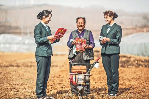 山東省淄博市沂源縣郵政分公司員工深入田間地頭,來到大張莊鎮(zhèn)董家河溝村,為村民介紹郵政助力春耕的服務(wù)內(nèi)容?! 踔袊]政報(bào)通訊員 王禾 周鵬 記者 袁威 攝影報(bào)道