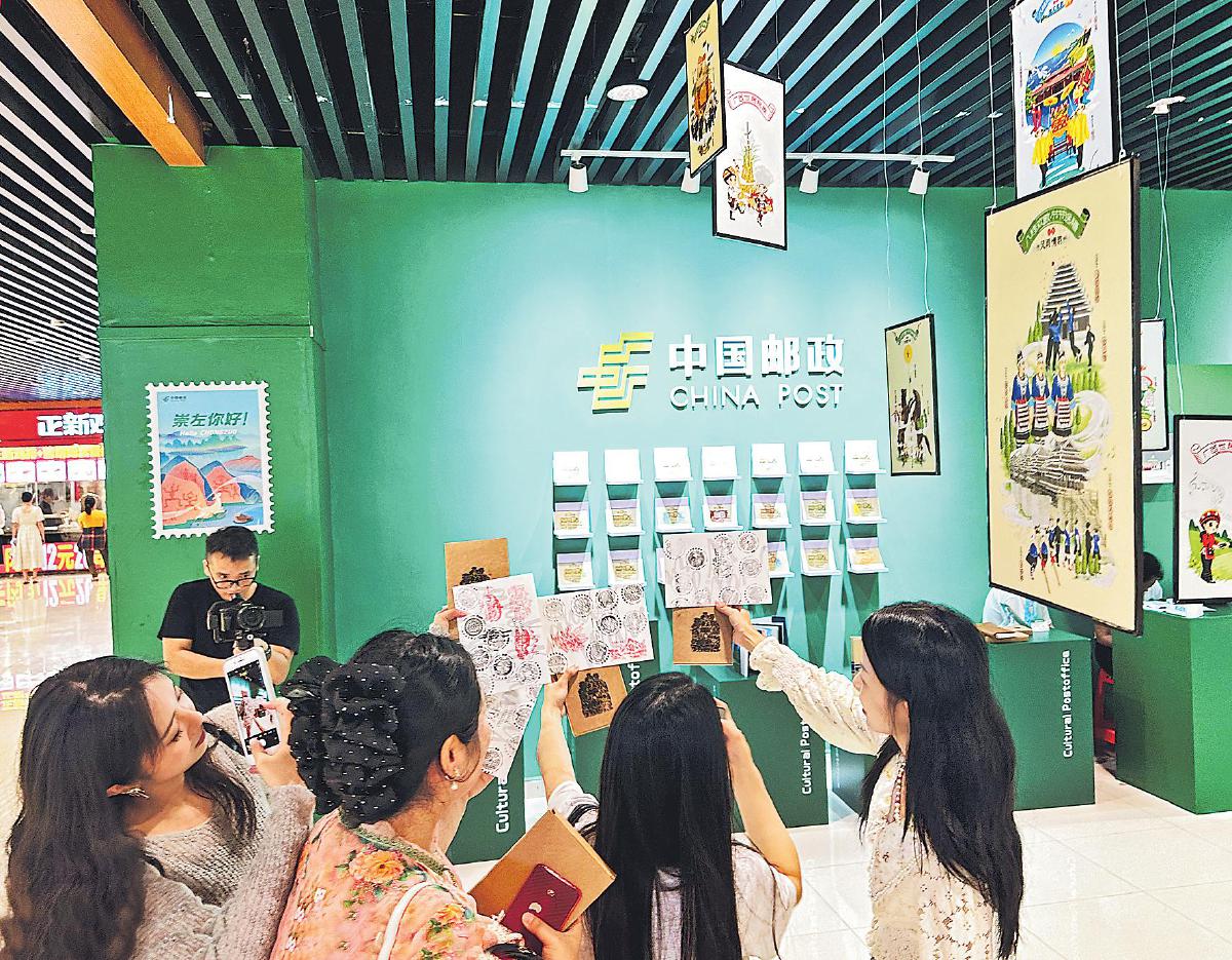 游客在非遺郵驛里領略“郵元素”,感受廣西非遺之美、民族文化之韻?! 跄獦渖z