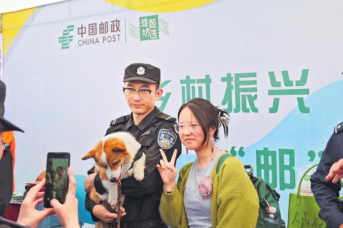 4月20日,全網(wǎng)流量過億的柯基警犬福仔,在執(zhí)行巡邏任務(wù)的間隙來到濰坊風(fēng)箏郵局參加“巡回粉絲見面會”,與粉絲親密互動。