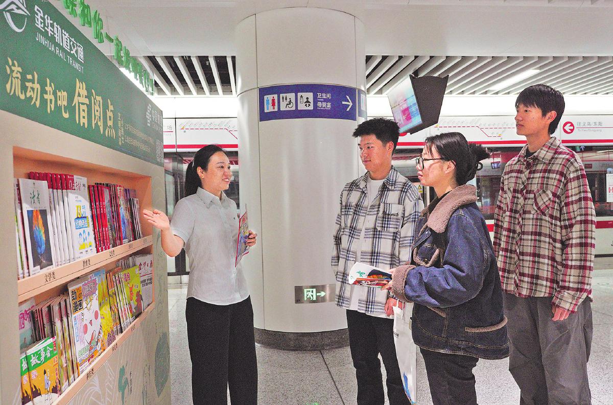日前,浙江金華郵政與市軌道交通集團(tuán)啟用“流動(dòng)書(shū)吧”,為建設(shè)“書(shū)香金華”又添一惠民實(shí)舉。金華郵政為“流動(dòng)書(shū)吧”免費(fèi)提供近2000本雜志,乘客可在進(jìn)站乘車時(shí)順手借一本,出站時(shí)歸還至固定還書(shū)點(diǎn)即可,契合當(dāng)今人們碎片化的閱讀習(xí)慣,受到乘客的歡迎。