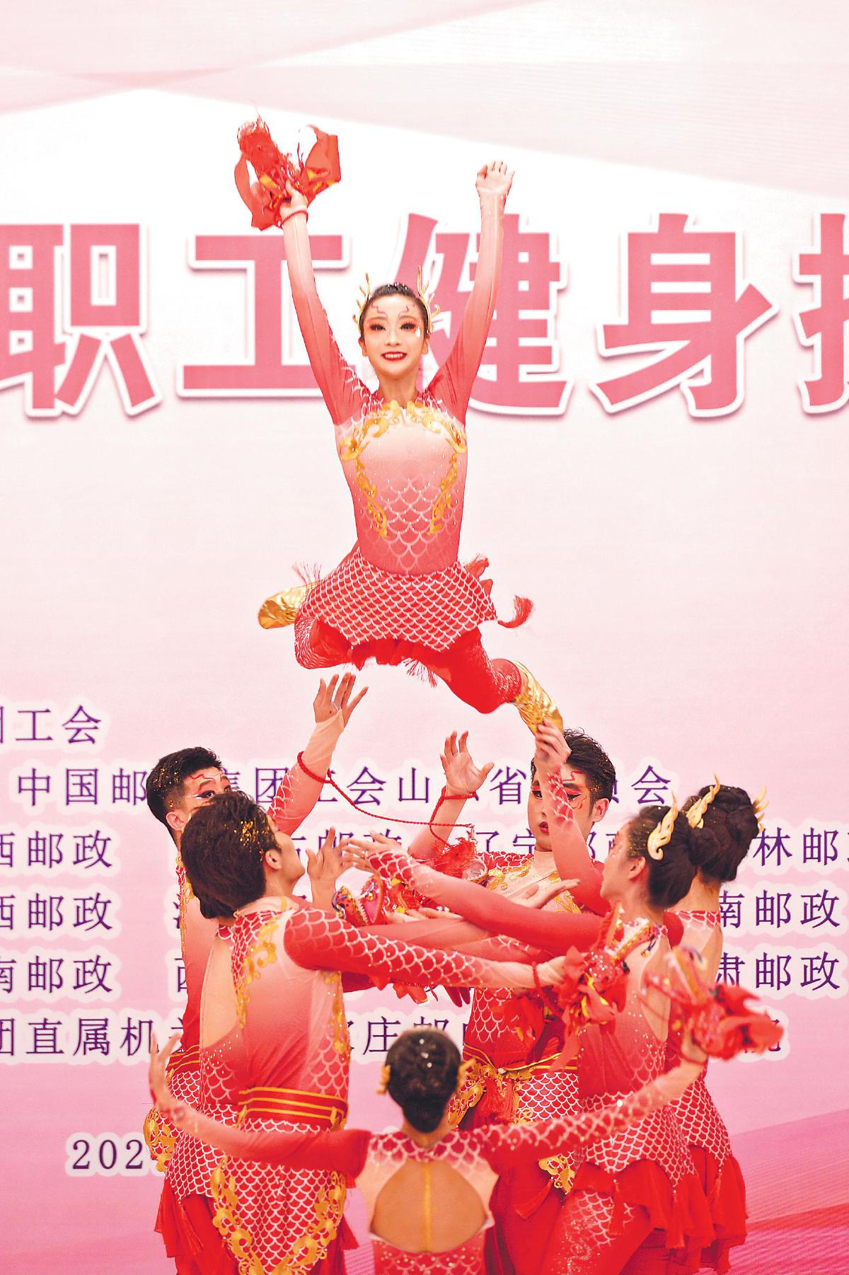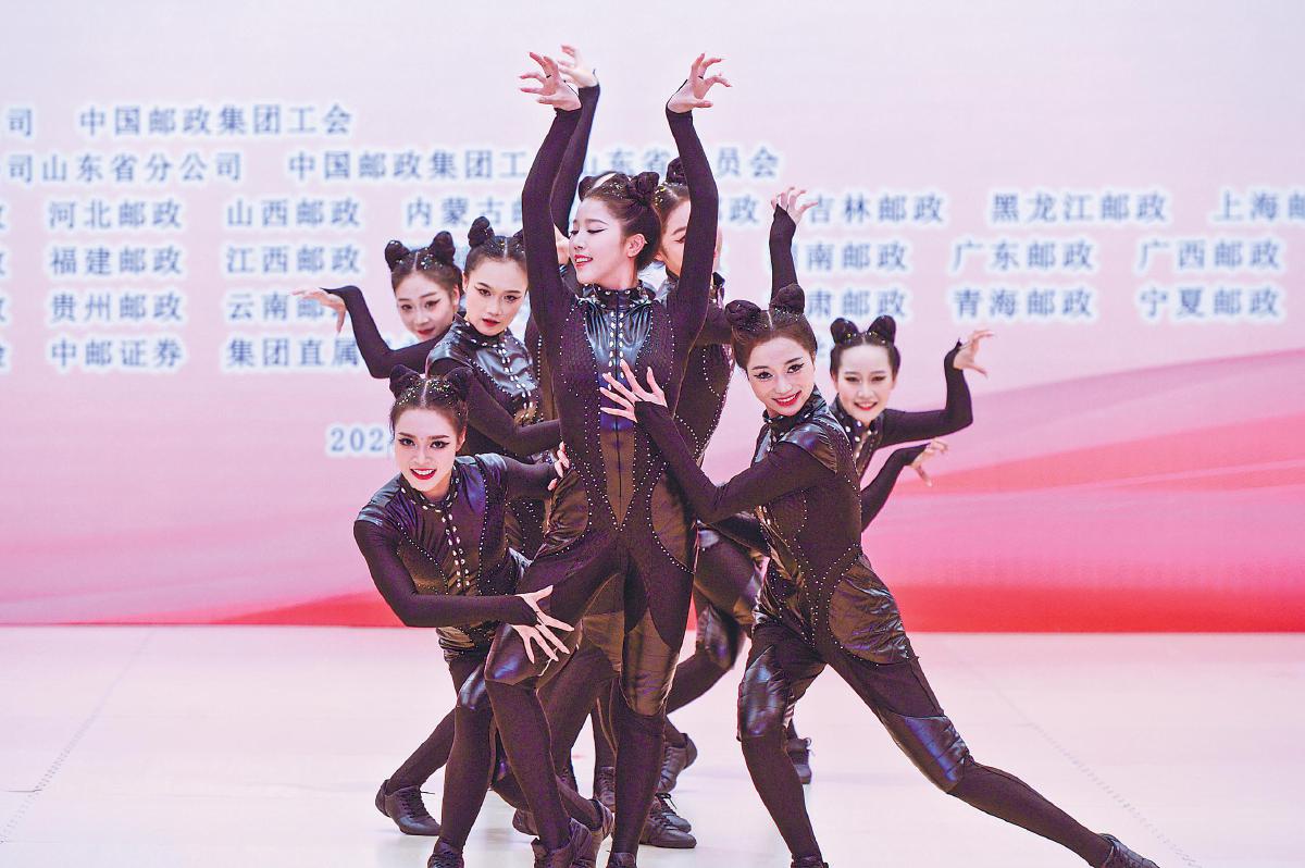 這次大賽舞出了風(fēng)采。無論是青年組還是中年組,參賽隊(duì)員們都活力滿滿、熱情四溢,集中展示了中國郵政全體職工的健身成果,彰顯著運(yùn)動帶來的健康與快樂。有隊(duì)員即使賽前訓(xùn)練受傷,也堅(jiān)持上場比賽,用行動將郵政人勇敢拼搏的精神、昂揚(yáng)向上的風(fēng)貌展現(xiàn)得淋漓盡致。