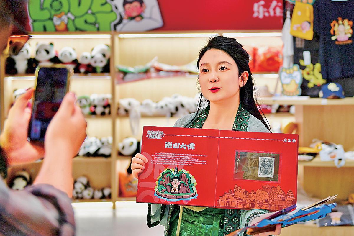 5月4日,位于四川省樂山市樂山大佛景區(qū)的樂樂郵局開展線上直播活動,為網(wǎng)友帶來景區(qū)的實時播報,展示郵政特色文創(chuàng)產(chǎn)品,并在現(xiàn)場設(shè)置章戳加蓋和明信片故事講述環(huán)節(jié),使網(wǎng)友身臨其境地感受大佛魅力和郵政文化。