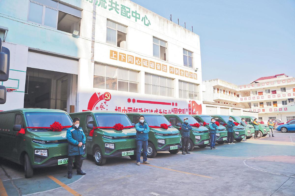 更好的服務(wù)體驗(yàn)背后是吉安市分公司不斷推進(jìn)三級(jí)物流體系建設(shè)增添的底氣。近年來(lái),該分公司加速推進(jìn)建設(shè)物流共配中心、鄉(xiāng)鎮(zhèn)中心和打造村級(jí)站點(diǎn)(“兩中心一站點(diǎn)”)。當(dāng)前,已投入使用共配中心4個(gè),全市2508個(gè)建制村村郵站點(diǎn)覆蓋率達(dá)100%;活躍站點(diǎn)為1667個(gè),絕對(duì)值列江西郵政第一。全市9個(gè)縣開(kāi)通城鄉(xiāng)公交郵路19條,覆蓋38個(gè)鄉(xiāng)鎮(zhèn)、198個(gè)建制村。通過(guò)城鄉(xiāng)公交運(yùn)郵,累計(jì)聯(lián)運(yùn)社會(huì)快遞郵件171萬(wàn)件,有力促進(jìn)了商品快速下沉、農(nóng)產(chǎn)品快速上行。通過(guò)在郵政網(wǎng)點(diǎn)和主題郵局設(shè)立無(wú)實(shí)物超市展板,可實(shí)現(xiàn)當(dāng)場(chǎng)下單,在距離最近的村級(jí)服務(wù)站點(diǎn)調(diào)貨,郵車、交郵合作等多種方式運(yùn)輸,兩小時(shí)內(nèi)送達(dá)。