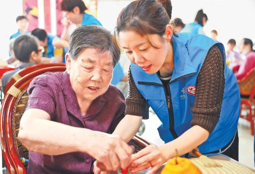 隨后,服務(wù)隊(duì)隊(duì)員為老人們送上水果和蒲扇,并共同穿針引線制作香囊,完成一份很有紀(jì)念意義的手工藝品。在服務(wù)隊(duì)隊(duì)員的陪伴下,老人們度過了一段難忘的時(shí)光,而他們的笑容和感激的話語,也成了隊(duì)員們最好的收獲。