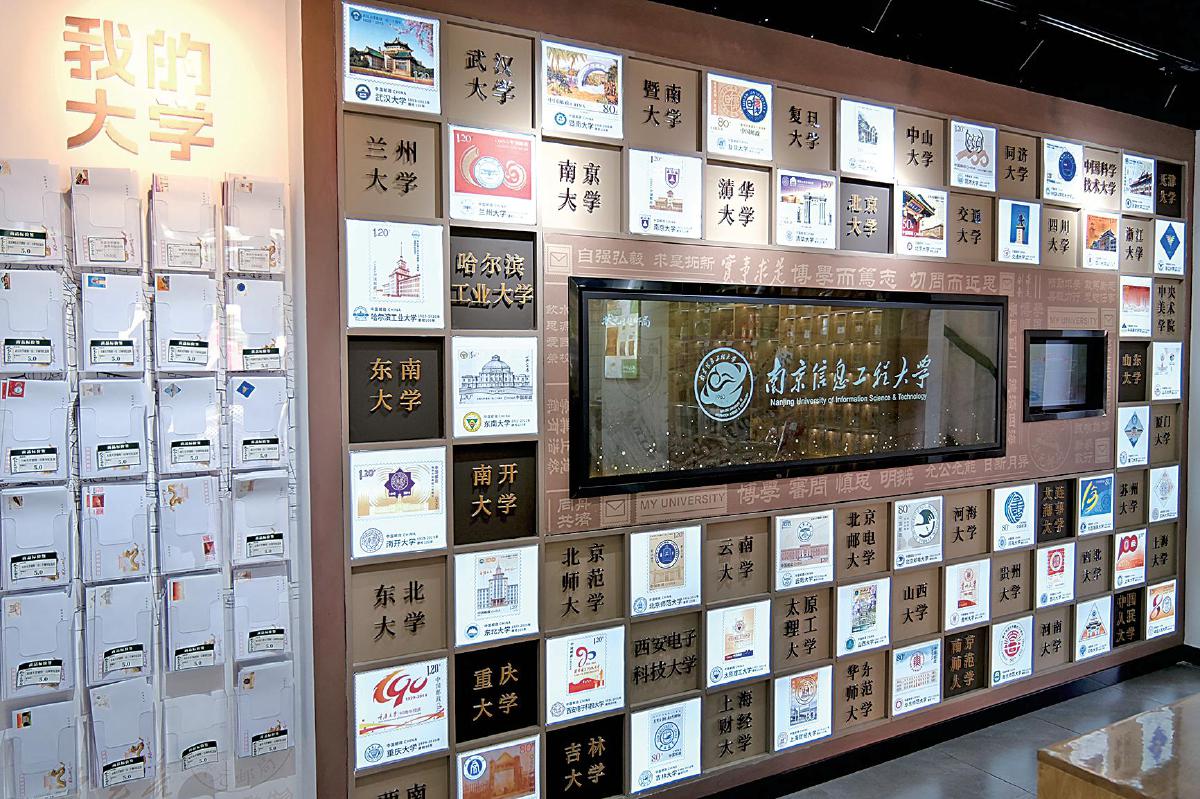 高校郵票展示墻激勵學(xué)子努力考取目標(biāo)院校?! 醪槿~娟 攝