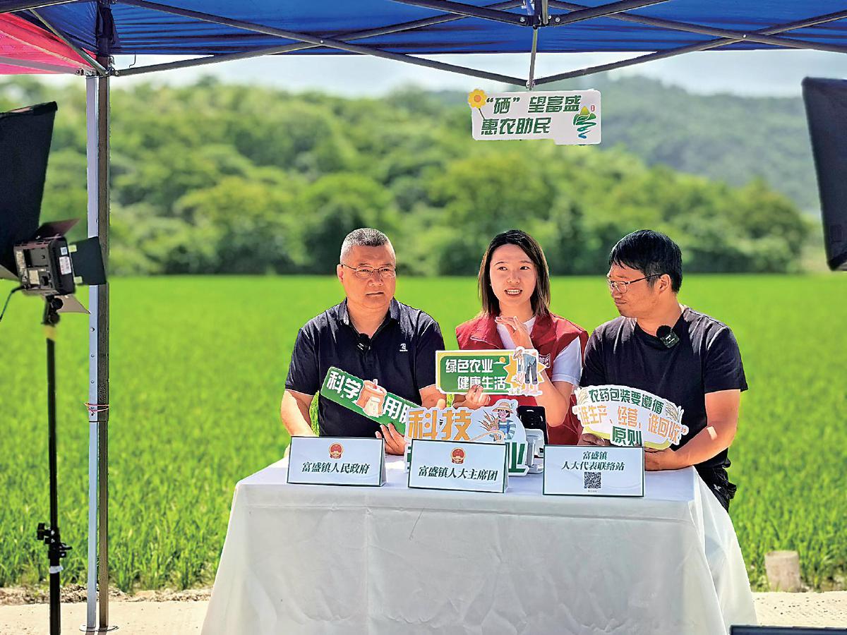 “大家看,我們身后的水稻田正是我們農(nóng)場(chǎng)種植的。在我們農(nóng)場(chǎng),這樣的水稻田種植面積超2000畝,歡迎對(duì)水稻種植感興趣的觀眾來(lái)實(shí)地參觀學(xué)習(xí)。”近日,浙江省紹興市郵政分公司與富盛鎮(zhèn)政府聯(lián)合組織了一場(chǎng)特別的直播活動(dòng),邀請(qǐng)全國(guó)農(nóng)業(yè)農(nóng)村勞動(dòng)模范、紹興市人大代表、富盛鎮(zhèn)新青馬農(nóng)場(chǎng)的負(fù)責(zé)人唐海峰走進(jìn)郵樂(lè)直播間,與紹興市分公司的金牌主播一起為觀眾作了有關(guān)農(nóng)業(yè)知識(shí)以及解決農(nóng)作問(wèn)題的生動(dòng)講解。整場(chǎng)直播活動(dòng)共吸引觀眾4200人次,點(diǎn)贊破1.1萬(wàn)次。