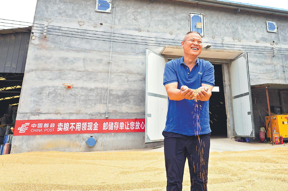 西平縣盆堯鎮(zhèn)于營(yíng)村郵政合作收糧點(diǎn)負(fù)責(zé)人于成功臉上洋溢著豐收的喜悅。