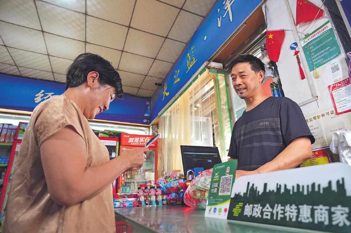 村民在西平縣盆堯鎮(zhèn)于營(yíng)村綜合便民服務(wù)站使用“小郵付”掃碼付款。