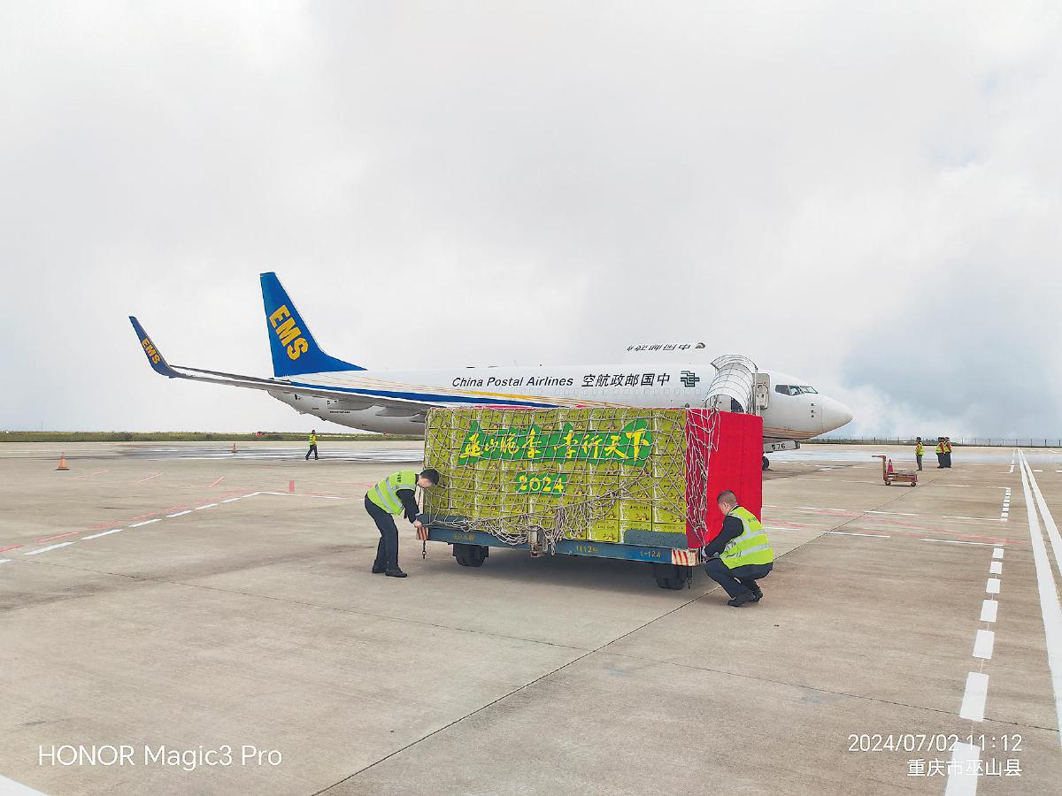 當(dāng)日23時(shí)10分,裝載著10710公斤巫山脆李的中國(guó)郵航CF9131航班從巫山機(jī)場(chǎng)起飛,75分鐘后飛抵南京祿口國(guó)際機(jī)場(chǎng),這標(biāo)志著中國(guó)郵政2024年巫山脆李專線航班開通運(yùn)行。2024年“郵運(yùn)通”極速鮮郵航專機(jī)首飛,標(biāo)志著重慶“郵運(yùn)通”助力鄉(xiāng)村振興行動(dòng)計(jì)劃正式啟動(dòng),讓遠(yuǎn)在千里之外的消費(fèi)者實(shí)現(xiàn)“今天下單,明天見李”。