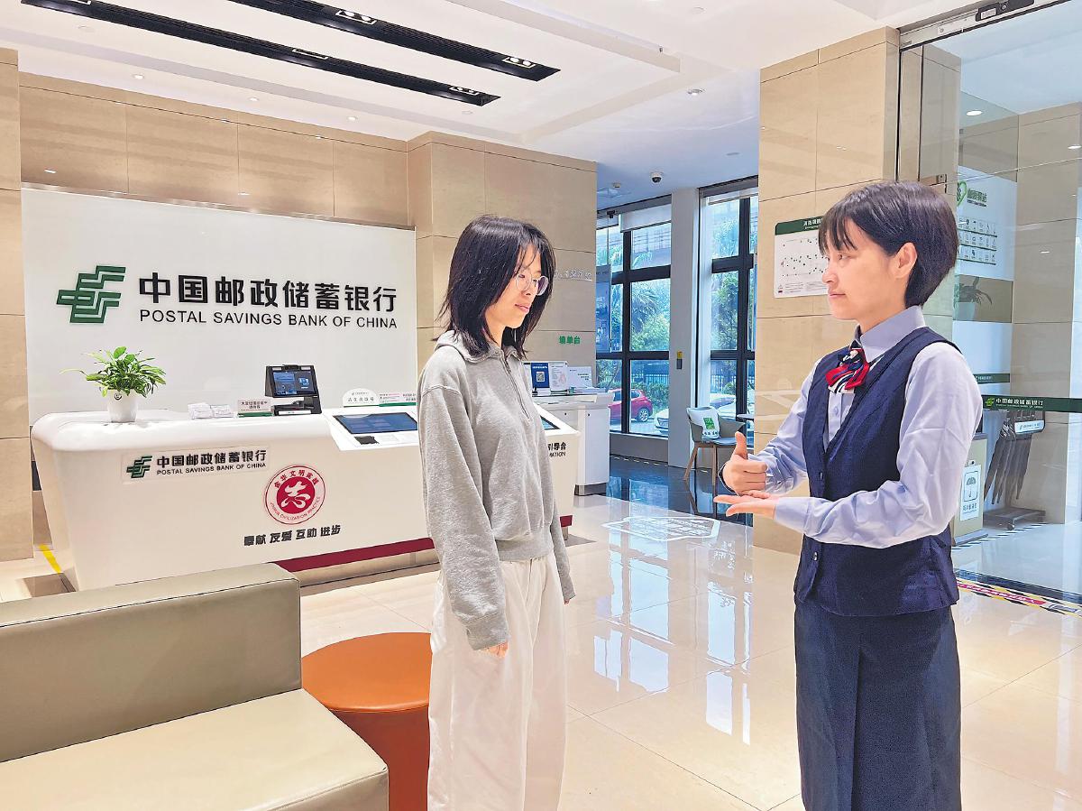 去年10月,有兩位聽障客戶來到網(wǎng)點辦理儲蓄卡掛失。那天正好是包秦琳值班,她用準確熟練的手語為客戶服務(wù)??吹桨亓諘终Z,客戶原本焦慮的情緒緩解了許多。包秦琳不僅快速幫助客戶辦理完掛失補卡,還教會他們使用手機銀行辦理業(yè)務(wù)。臨走時,客戶用手語稱贊道:“謝謝,你的服務(wù)真棒,郵儲銀行真棒!”在包秦琳的帶動下,浙江省分行已建立了一支20余人的手語專員隊伍,他們每天堅持練習(xí)銀行常用手語,讓更多特殊客戶也能享受到安全、便捷、暖心的金融服務(wù)。