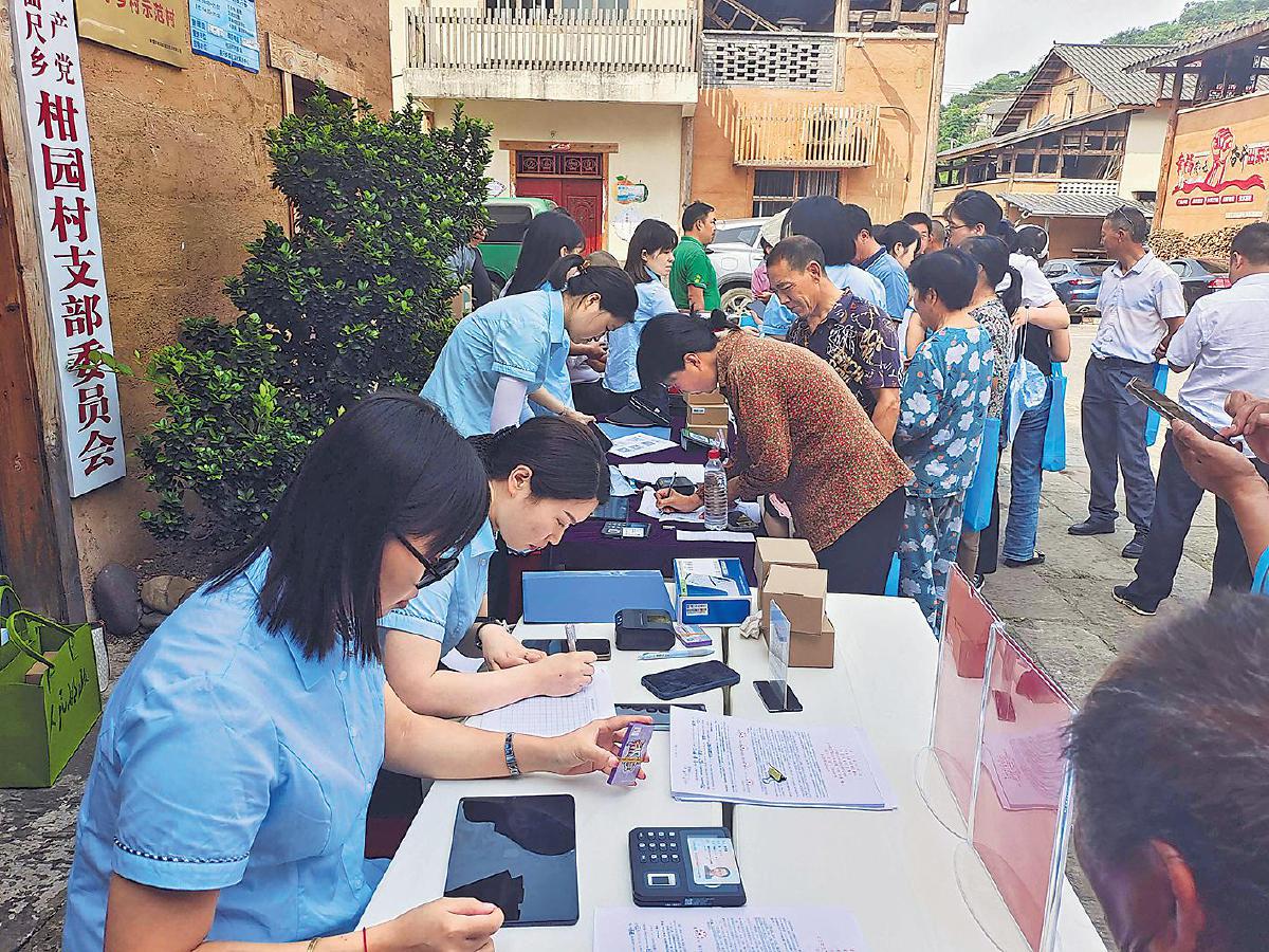 巫山郵政送普惠金融進村,為果農(nóng)辦理金融業(yè)務。