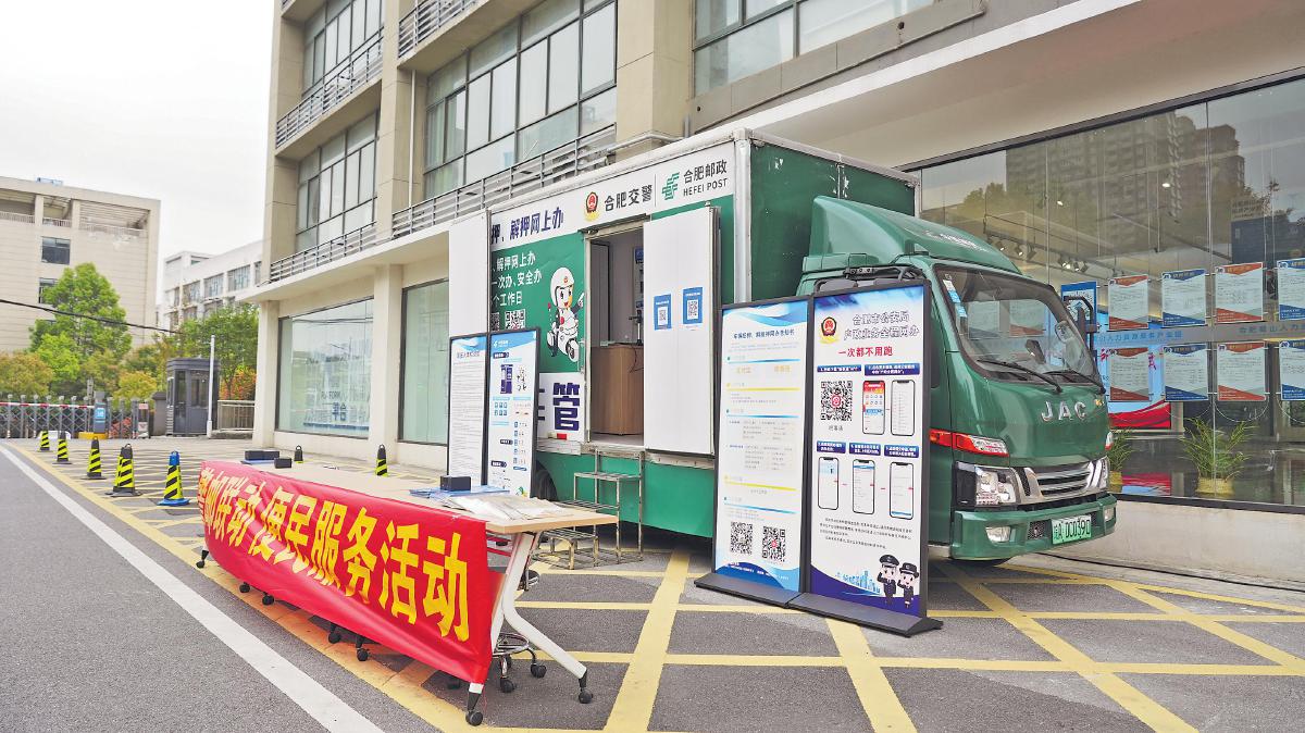 “自今年4月7日‘警郵服務流動車管所’正式開辦業(yè)務以來,已經在合肥市蜀山區(qū)電子產業(yè)園、駱崗公園‘省直機關讀書月’活動現場、萬達廣場等地辦理業(yè)務,共計辦理駕駛人體檢業(yè)務443筆、期滿換證申請業(yè)務422筆、駕駛證補領業(yè)務98筆、行駛證補換領業(yè)務33筆,開展各項活動14次,共計服務群眾600余人,成為真正的惠民工程?!焙戏适蟹止尽熬]服務流動車管所”項目負責人施展說。