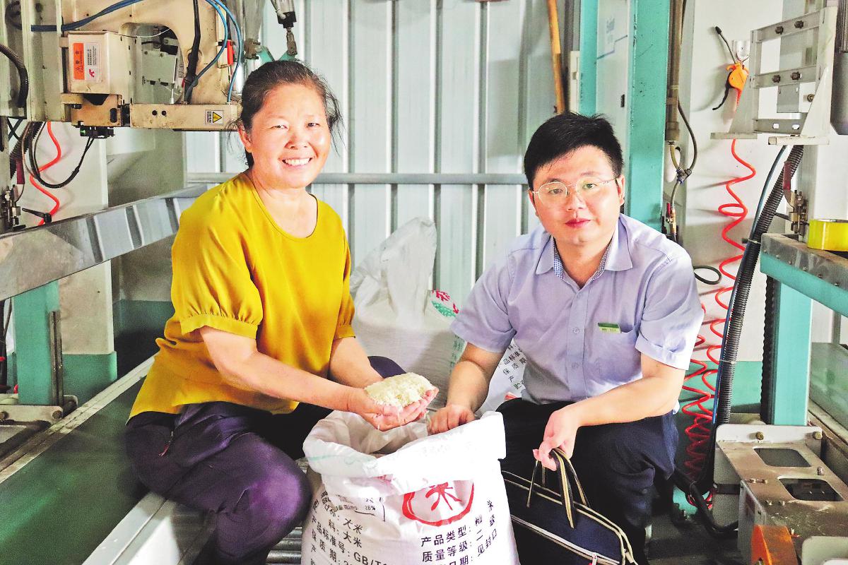 韶關(guān)是廣東省糧食和蔬菜等重要農(nóng)產(chǎn)品供應(yīng)基地。韶關(guān)市分行認(rèn)真貫徹國(guó)家及省、市政府對(duì)“三農(nóng)”工作的相關(guān)決策部署,加大涉農(nóng)領(lǐng)域信貸資金投放力度,為夏糧收購(gòu)、顆粒歸倉(cāng)提供全方位金融支撐,助力粵港澳大灣區(qū)“米袋子工程”建設(shè)。截至7月末,該分行累計(jì)發(fā)放涉農(nóng)貸款余額超過50億元。圖為冠奕通公司負(fù)責(zé)人徐石鳳(左)向郵儲(chǔ)銀行信貸人員展示剛生產(chǎn)加工出來(lái)的新大米。