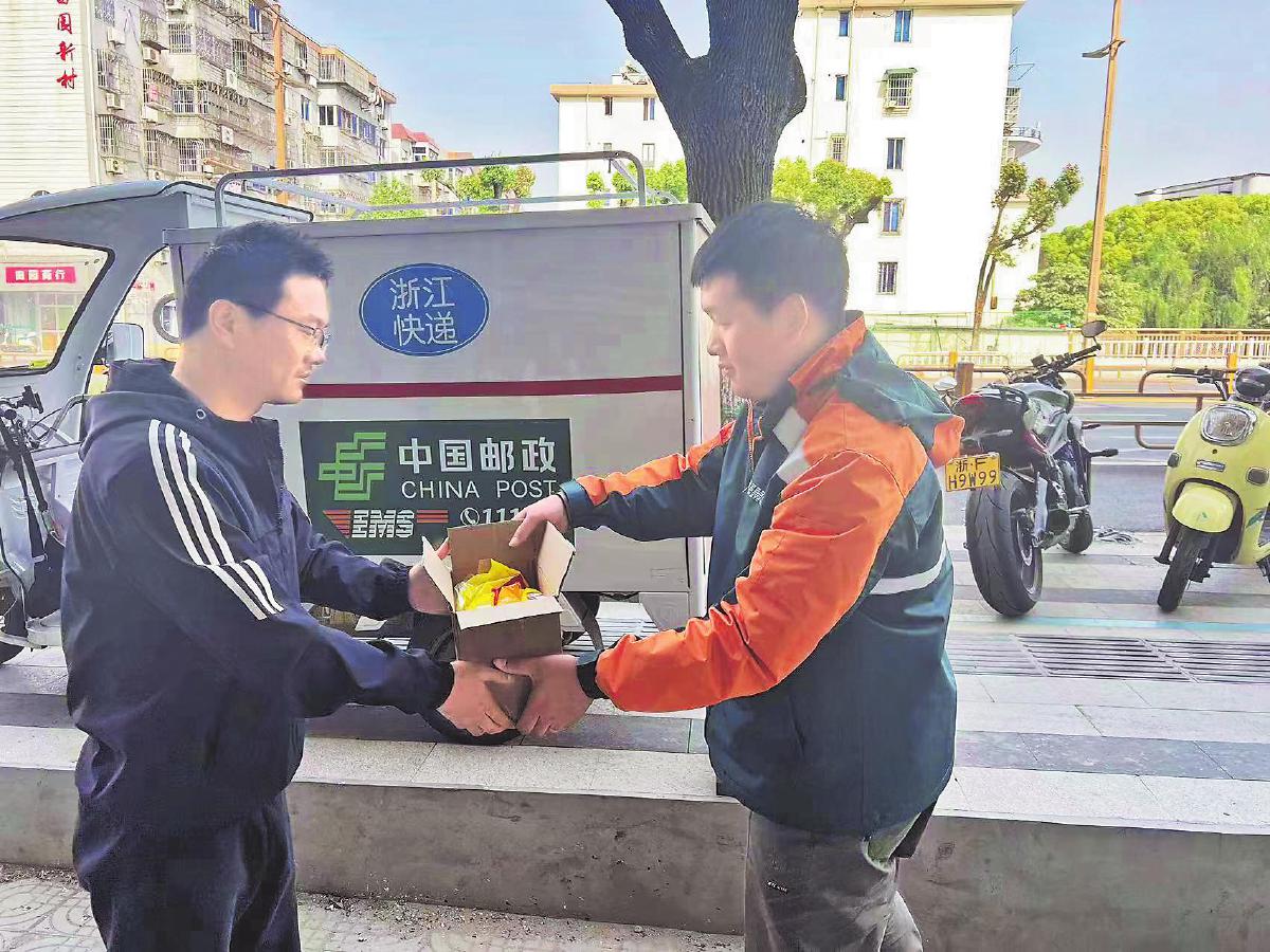 嘉興市分公司員工在約定時間上門收取客戶退件。□周琦 攝