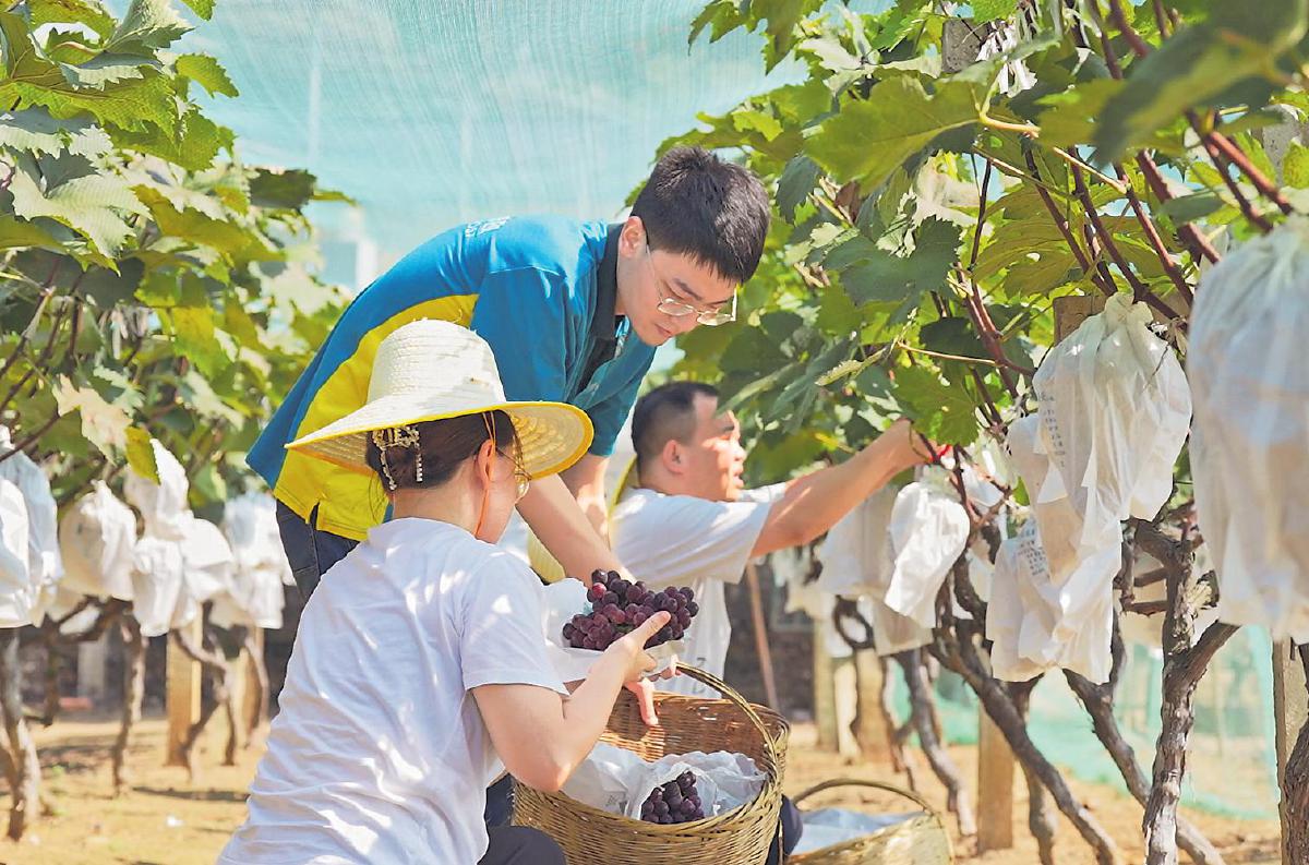 日前,湖北省荊門市郵政分公司助農(nóng)服務(wù)隊來到漳河鎮(zhèn)京河葡萄種植基地,幫助一位身體有殘疾的種植者采摘、裝箱、打包、運輸葡萄,并通過“基地直播+社區(qū)團購”的方式,助銷葡萄1300多斤。據(jù)悉,幫扶對象劉師傅是一位50多歲的殘疾人,因身體活動受限,自家種植的葡萄出現(xiàn)滯銷。荊門市分公司通過走訪了解到這一情況后及時伸出援助之手,解了劉師傅的燃眉之急,受到當(dāng)?shù)厝罕姷暮迷u。