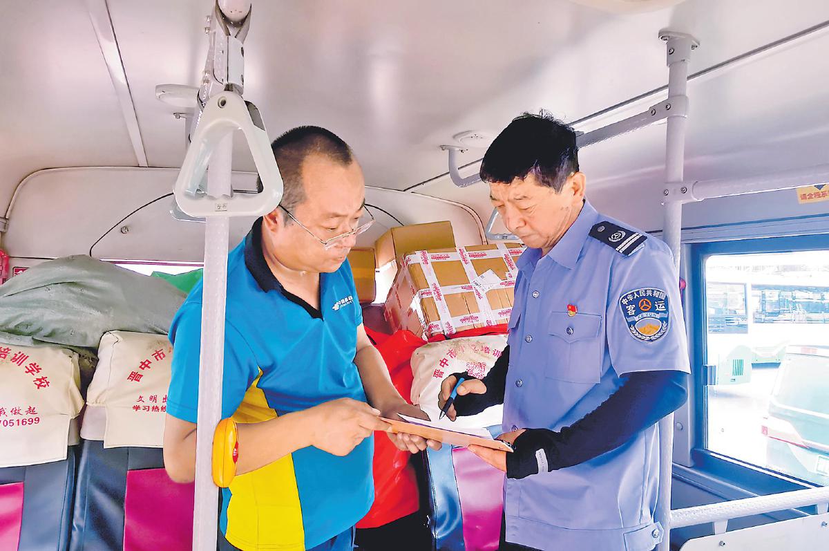 8月15日9點(diǎn)40分,山西省武鄉(xiāng)縣汽車(chē)客運(yùn)中心,郵政員工和客運(yùn)司機(jī)清點(diǎn)、交接郵件后,公交車(chē)駛往該縣最偏遠(yuǎn)的墨鐙鄉(xiāng)。