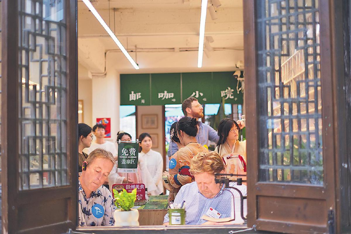 “進(jìn)來后一下子感到很驚艷,感覺超級棒,非常適合拍照。來宏村一定要到宏村主題郵局打卡。”8月1日,從廣東省來宏村旅游的王女士在郵局內(nèi)點(diǎn)了一杯冰拿鐵,邊喝邊說。為助力“大黃山”文旅發(fā)展,充分滿足游客的個(gè)性化需求,黃山市郵政分公司堅(jiān)持文旅郵融合,將景區(qū)的優(yōu)質(zhì)景觀和客流資源與郵政的“物流+電商+金融+信息”資源有機(jī)融合,把宏村主題郵局打造成為“郵政服務(wù)+文創(chuàng)體驗(yàn)+休閑文旅”的特色服務(wù)場所和“傳播文化、品味生活”的徽州文化窗口。今年二季度以來,宏村主題郵局營業(yè)額超65萬元,同比增長42%。