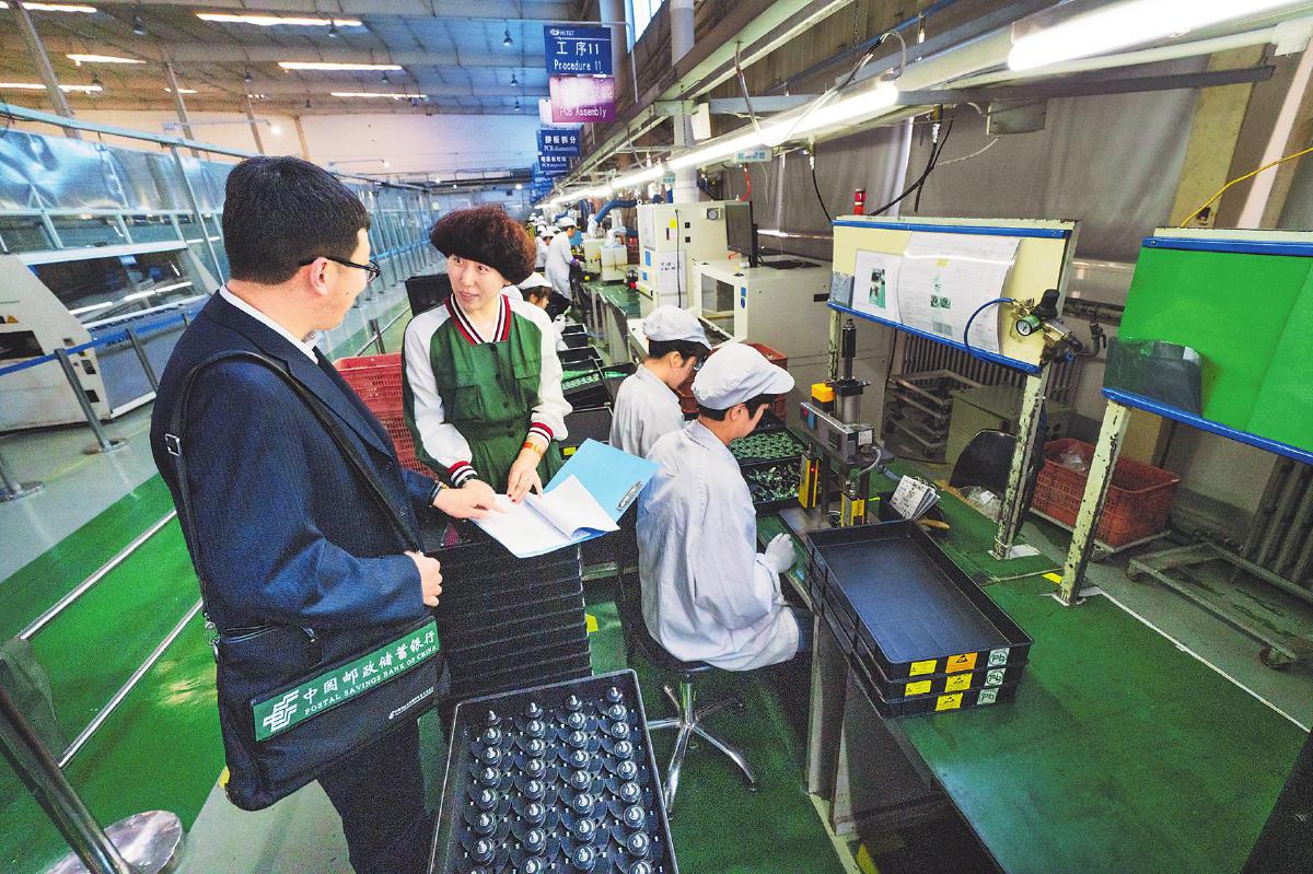 黑龍江省分行客戶經(jīng)理來到貸款客戶企業(yè)做貸后調(diào)查。