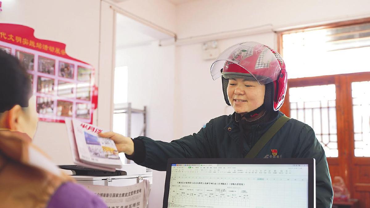 匡錦梅為村委會(huì)投遞報(bào)刊。